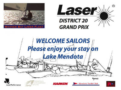 This was the biggest regatta in Madison this summer and we thank everyone who helped make it a success. Next year the College Sailing Nationals will be held at the Hoofer Sailing Club. A 10 day marathon of three events, Womens, Team Racing and Dinghy Nationals along with an open college alumni regatta, probably in Techs and 420's with as many as 100 competitors. Contact the team about volunteering. We want to thank Robert Krebs of the Madison Sailing Center for hosting and storing all the boats, Mendota Yacht for supplying large buoys and the perfectly sized small whayler. Joanne (Chicago) for helping RC. Jeff Russell for helping adjust marks on Saturday and Sunday and taking great photos. Dan Fix for support boat on Sunday. Jesse Pfammeter of Hoofers for helping with registration. Dave Sebald for breakfast. FLSbanners in Sturgeon Bay for the Visors, Laser Performance for the hats, APS LTD for the award gift certificates. Walgreens for the instant photos. The PRO Dierk Polzin did an ok job getting the racing off timely and setting appropriate courses, for his efforts he was given some cursory applause. Next year's District 20 Grand Prix will probably be in Milwaukee in early August. Thanks for coming and making all the effort worthwhile. | ||||||||||||||